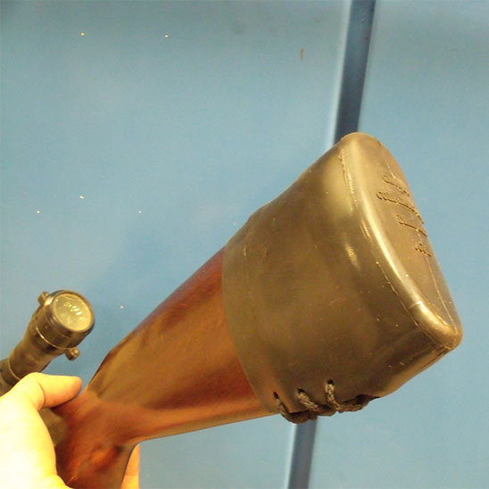 The GCD Recoil Converter contains a highly perfected Space Age Hydraulic Damper which converts up to 94% of the recoil energy transmitted through it into heat. That means you get 30% less total energy than with any known rubber-only recoil converter.